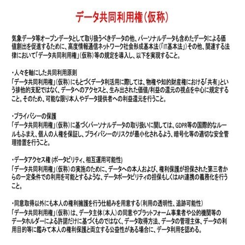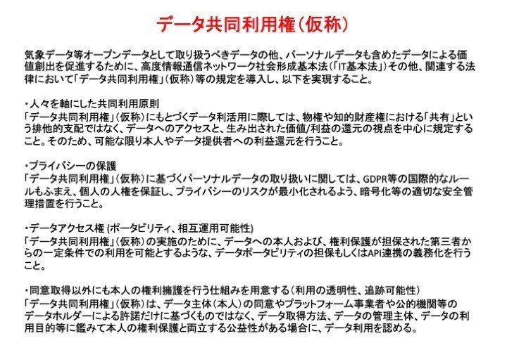 しかし、提案内容は公益のためのデータ利用を推進しようというもので、むしろ個人の権利であるプライバシーを一部制約しようとしているように見える。このような議論のために「人権」という言葉を持ち出したことは不適切だったのではないか。